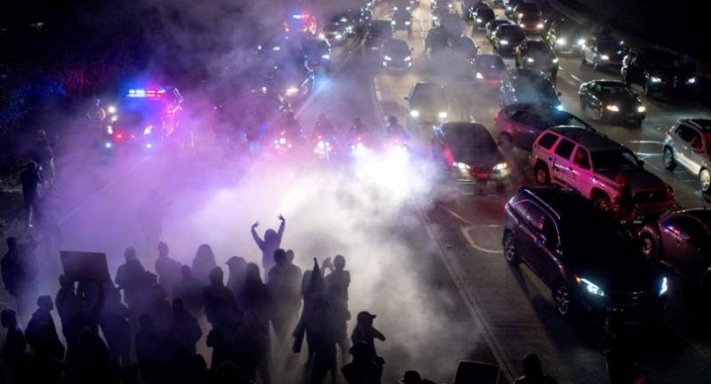 One person died when a car surged into a crowd of what witnesses said was counter-demonstrators.