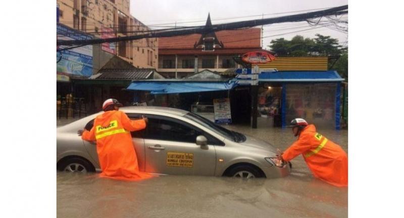 Several hours of heavy rains since Monday night have resulted in some parts of Patong to be underwater, especially on Rat-U-Thit 200 Pee Road where smaller vehicles and motorbikes could barely move through.