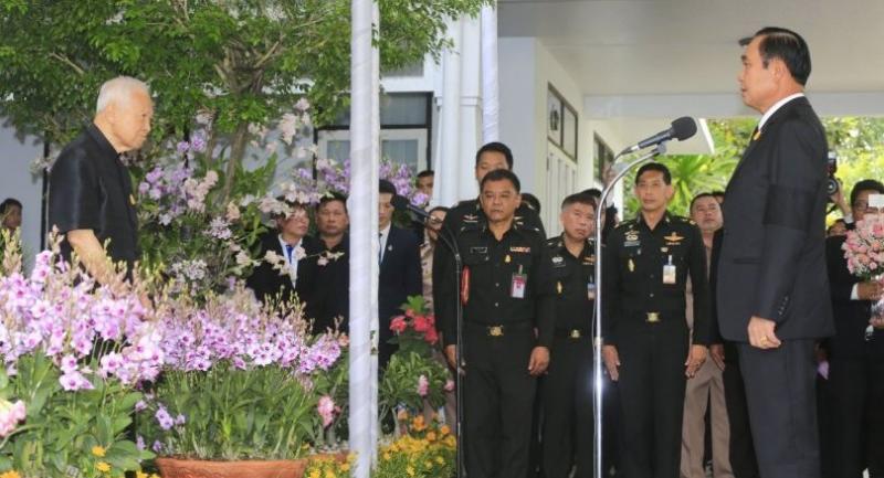 PM General Prayut this morning led the Cabinet and military top officials in celebrating the 97th birthday of Prem at Si Sao Thewes residence.