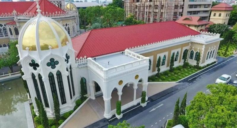 The building was designed with Neo-Venetian Gothic architecture to be in harmony with the Thai Khu Fah building. It was painted yellow, a colour representing the late King’s birthday, and adorned with a giant golden dome.
