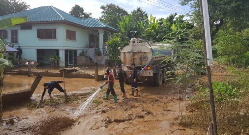 Narong was accompanied by Colonel Asamapong Nilpan from the Pha Muang para-military ranger task force and other officials. They delivered drinking water to the Ban Nam Or residents and helped clean two houses that were buried in mud.