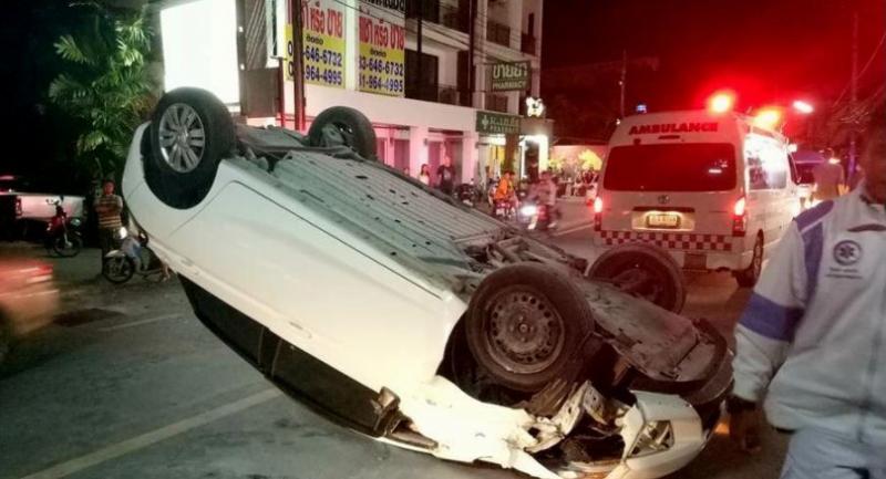 Last night, at Soi Saiyuan in Rawai, a Russian man named as 35 year old Julian Ranmer crashed his Honda Jazz into the back of a car parked on the side road before flipping it and hitting a motorcycle riding in the opposite lane.