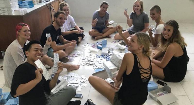 It’s a regular voluntary activity each semester at PSU. Carex in Bangkok provide the condoms, the students pack them into small packs for distribution.