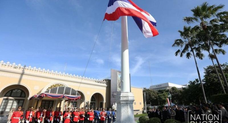 At 7.45am at Government House in Bangkok, Prime Minister General Prayut Chan-o-cha formally presented the flag to a guard of honour to be flown in front of the Santi Maitree Building.
