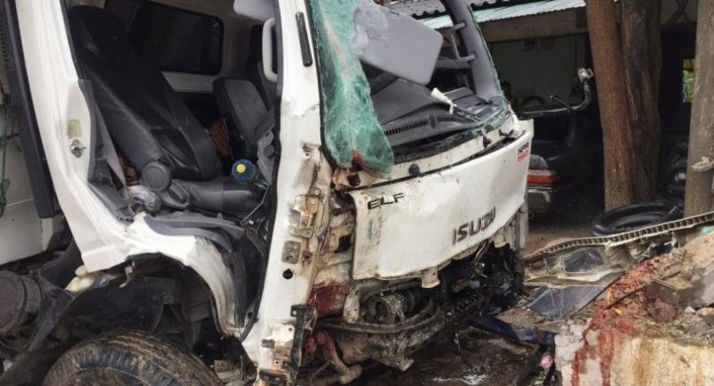 Police said the truck was apparently speeding when it lost control on the slippery road following rains and crashed into the fence of the house belonging Siwaporn Kojirawathee, 58.