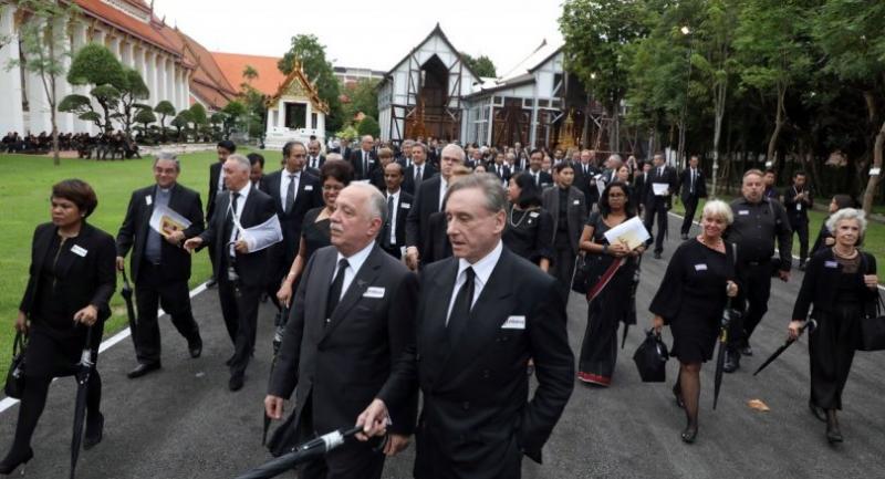 The diplomatic guests were from the embassies of the US, the UK, Switzerland, France, Germany, Sweden, Canada, Japan, Bhutan, members of Asean and the Middle East. The ambassadors will participate in the Royal Cremation on October 26.