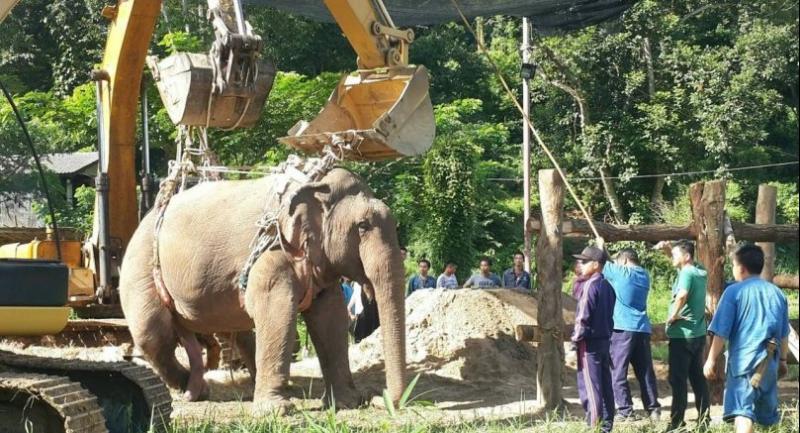 Dr Taweepoke Taweepoke, a vet at the hospital, said that the team is now doing its best to enable the elephant to stand by itself again.