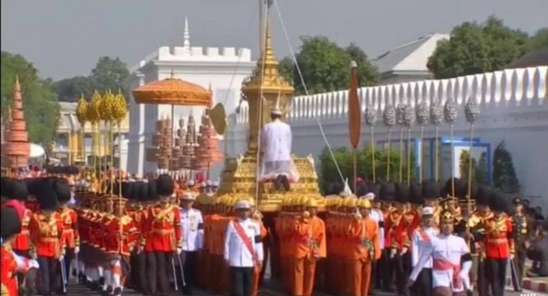 In a ceremony broadcast live on Thursday morning, preparations continued to transfer the Royal Urn on the Palanquin with Three Poles, or Phra Yannamas Sam Lam Khan, from Dusit Maha Prasat Throne Hall in the Grand Palace to the Elevated Royal Pavillion on the eastern side of Wat Pho.
