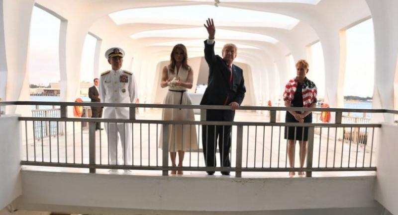 Trump and his wife Melania tossed white pikake flower petals into the waters at the USS Arizona memorial, where hundreds of US service members died when Japan launched a surprise attack in 1941, triggering the US entry into World War II.