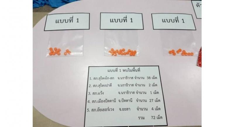 Citing a recent drug bust by Ai Yer Weng precinct officers in Betong that seized Etizolam, which was sent for a lab test to the Medical Science Centre, Songkran said the pills had also been found recently in Pattani and Narathiwat. Seventy-two pills have been found in the three provinces to date.