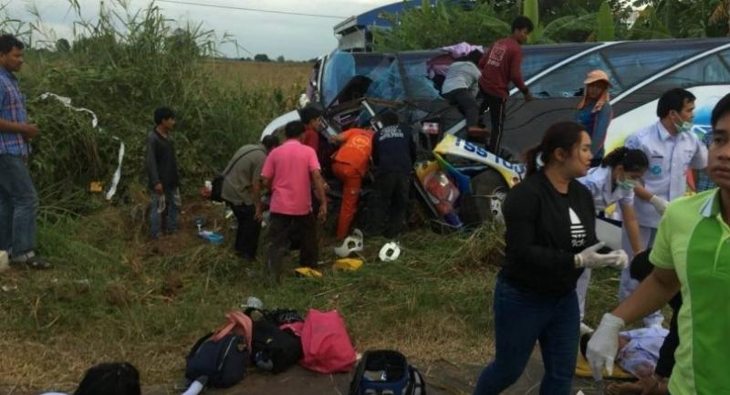 Police said the accident happened at 4 pm on the Sikhiew-Chaiyaphum road at the Ban Kud Muang intersection in Tambon Takhien of Dan Khun Thod district.