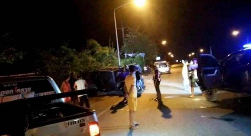Pol Capt Komkrit Fiamadun of Phra Thong Kham police station said the pickup driven by Atipat Khamkhoonna, 27, was approaching an intersection at high speed when the car cut in front of it.