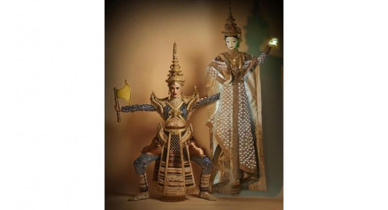 There are two figures incorporated in the costume. Mekhala is a puppet, while Mareeya is Ramasoon in the costume. The costume is in a modern Thai style.
