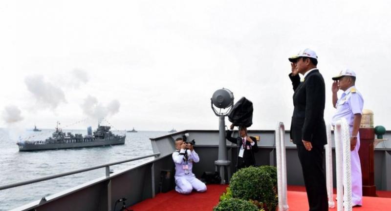 Prime Minister Prayut Chan-o-cha presided over a parade of 18 warships yesterday in Pattaya.