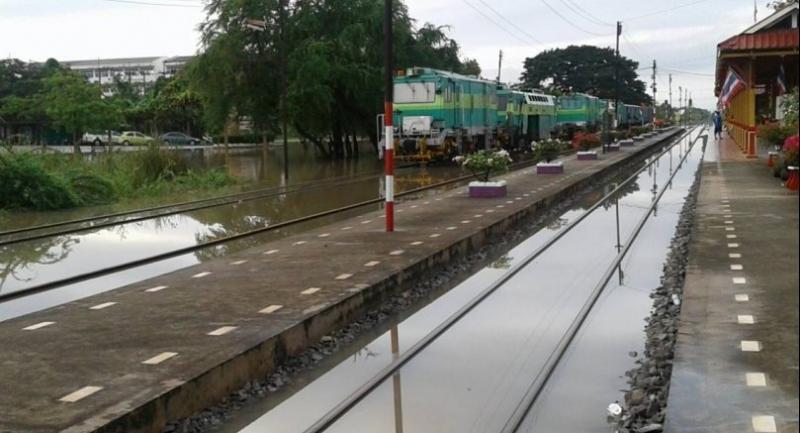 Trains to the South were suspended on Tuesday afternoon after heavy rains submerged railway tracks in Hua Hin in Prachuap Khiri Khan province.
