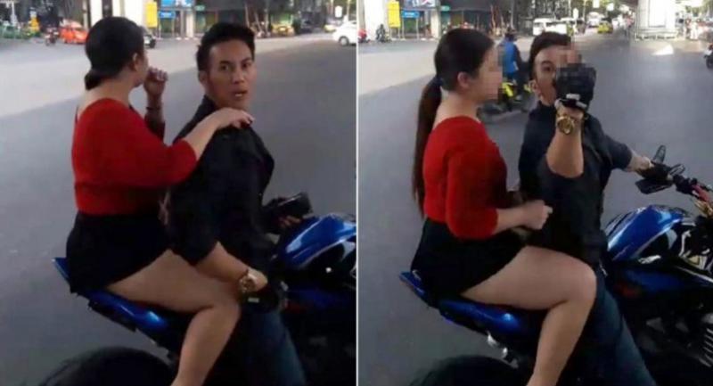 The video showed Mekin, with a woman riding pillion, parking his bike in front of a police booth at the Saladaeng intersection. The two were not wearing helmets.