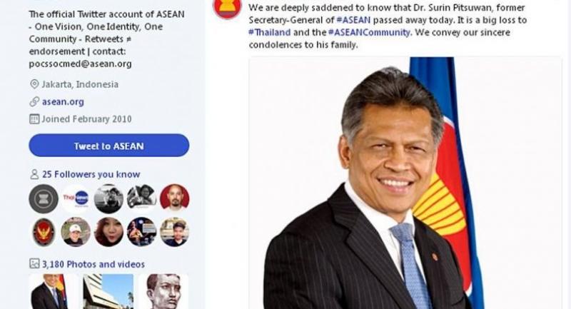 Asean’s official Twitter account also said: “We are deeply saddened to know that Dr Surin Pitsuwan, former secretary-general of #ASEAN passed away today. It is a big loss to #Thailand and the #ASEANCommunity. We convey our sincere condolences to his family”
