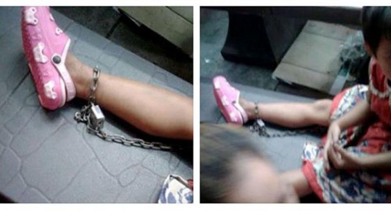 After an image of the chained girl was shared on Thai social media, and subsequent child abuse complaints, Phuket children and family home care head Atchara Surakul and other officials went to inspect the apartment at 10am on Tuesday.