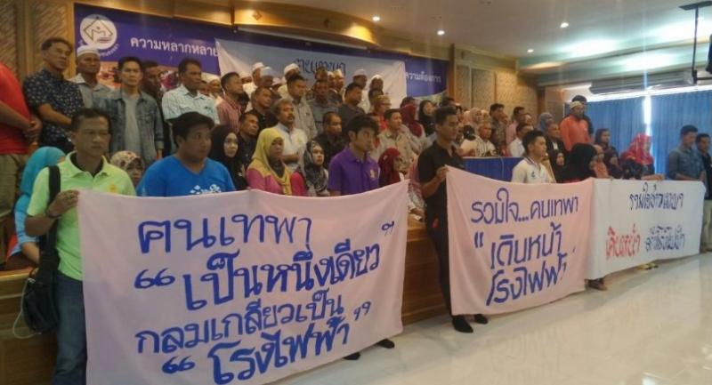A representative of the group and former head of Thepha’s Tambon Tha Muang, Li Samor, said it was time for the government to move forward after four years of delay, so supporters would gather in front of the Thepha District Office today to show support for the power plant.