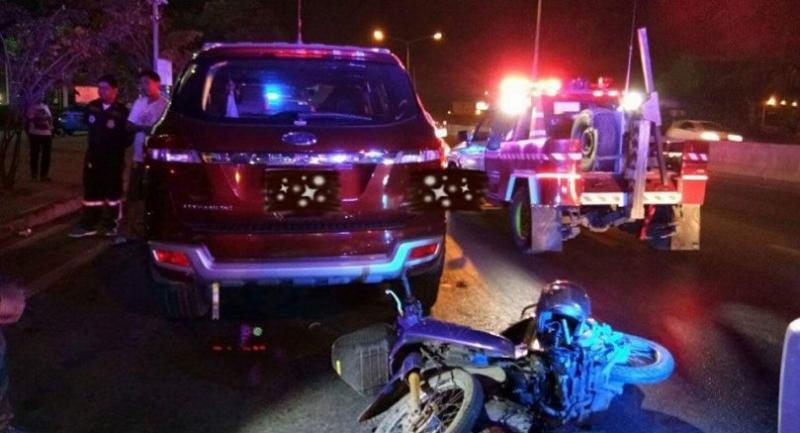 Police found the dead body of Kittipan Chancharoen, 42, and his wife Supitsa Kit-udom, 38, near the wrecked Suzuki motorcycle without a licence plate while the front of the Ford Everest pickup truck was severely dented.