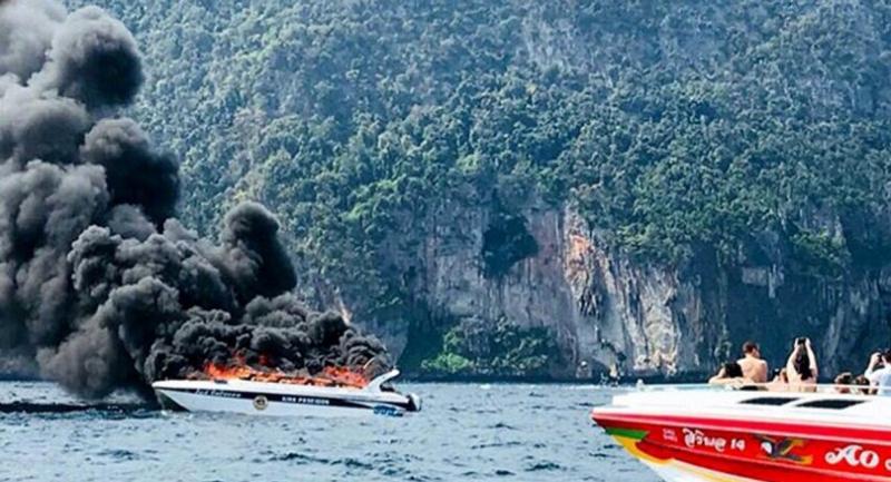 Surapol said it was suspected that the speedboat’s engine had a fuel leak during hot weather. When the boat captain opened the hood to check a machine malfunction, air pouring into the engine chamber may have caused an explosive reaction.