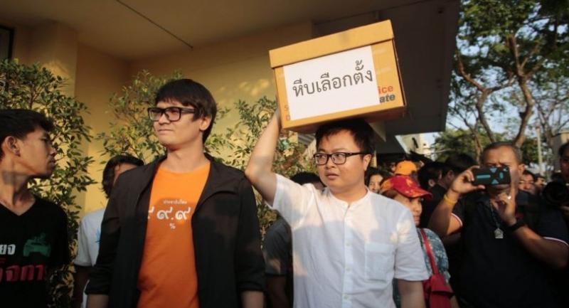 On Saturday, the four activists showed up at another pro-election assembly held near Democracy Monument, with more than 200 police officers providing tight security.