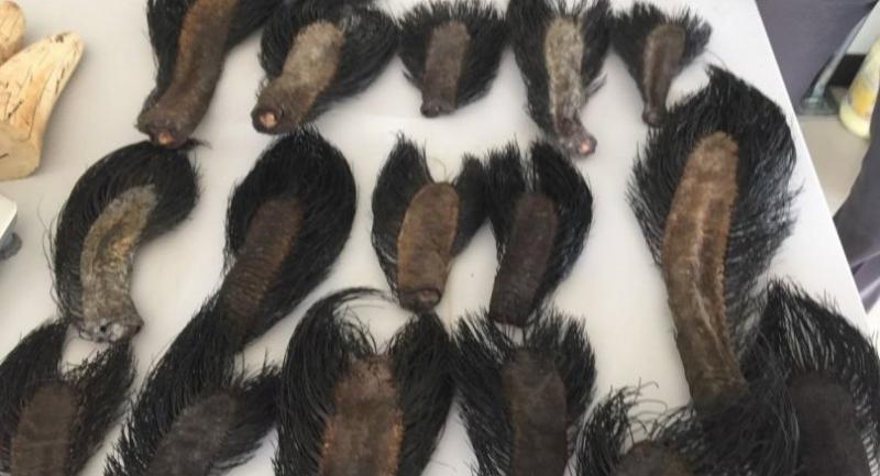 Their plan was to sell the items to customers in the Northeast who would make them into decorative items or talismans, Tak police deputy chief Pol Colonel Thararak Parameesa said as he inspected the seized items at Phawor Police Station on Wednesday afternoon.