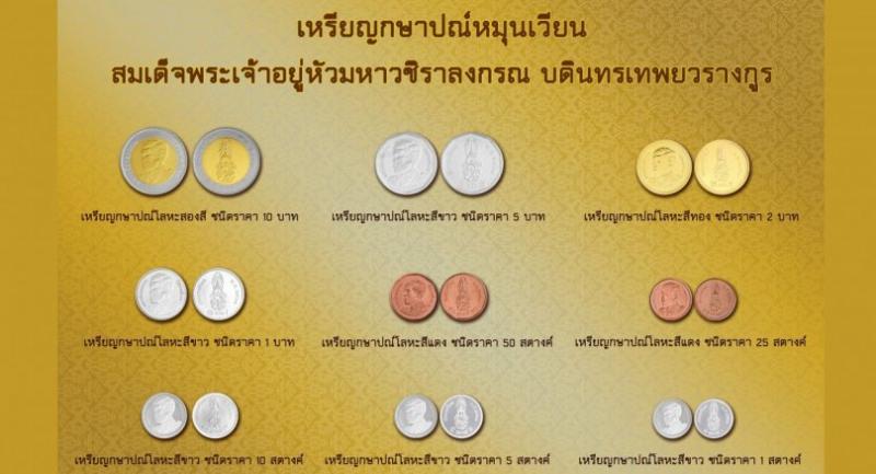 The new coins come with nine face values – Bt10, Bt5, Bt2, Bt1, 50 satang, 25 satang, 10 satang, 5 satang and 1 satang, although the last three will not be in public circulation and will be limited to official use.