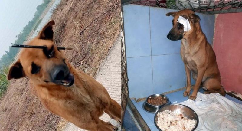 Veterinarian Jirawat Pali said the dog’s wound had become inflamed and was bleeding but the animal would not lose its eyesight as the arrow, which had been dislodged by the time of its capture, had narrowly missed its eyeball.