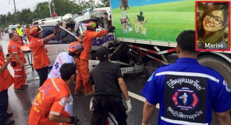 Marisa, who has lived and studied in Germany since the age of 10, was killed when the ambulance she was riding in crashed on its way to aid victims of a bus accident in Pak Thongchai district.