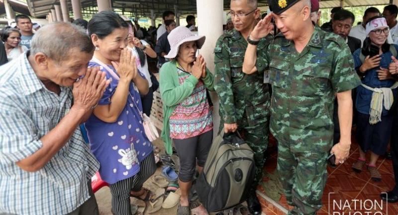 Fourth Army Region chief Lt-General Piyawat Nakwanich’s announcement yesterday prompted cheers and clapping from a crowd of 500 villagers who had gathered at Wat Leenanont to object to the idea, claiming it could further damage trust.