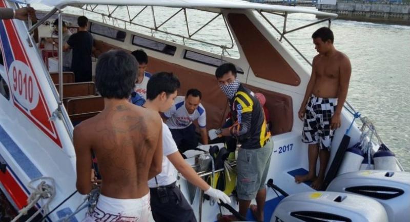 Police were alerted at 4.30pm of the accident and a speedboat brought the body of the Chinese man and the two injured men back from Koh Racha islet to Phuket’s Chalong Bay pier at 5.30pm.
