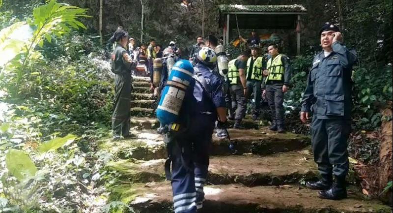 As of on Sunday afternoon, officials had not confirmed if they had been found. At 5pm, two teams of divers went in to create a rope-guiding line under the muddy five-metre-deep water in the cave to prepare for the rescue mission or at least to take the stranded youth some food before bringing them out.