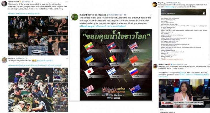 Throughout the 10 days since the teenagers and their coach went missing in Tham Luang cave, users on all social network platforms – Facebook, Twitter and Line – were busy creating many kinds of online support, including cartoons, drawings and songs for the rescue operation and the missing group.