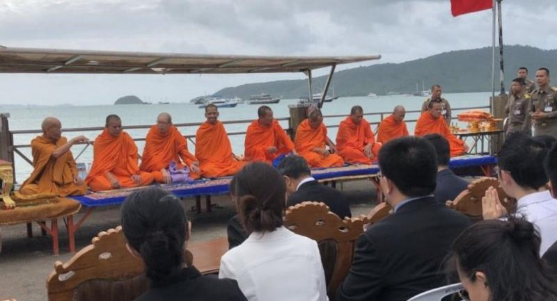 The ceremony took place at the Ao Chalong pier early yesterday morning to boost the morale of grieving relatives who were present, along with locals and Chinese authorities.
