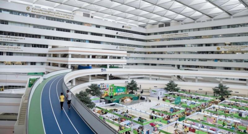 Dubbed the country’s longest track of its kind, with a lap distance of 412 metres around the fourth floor of Ratthaprasasanabhakti Building (Building B), the three-lane running track is available for use any day, free of charge for both state officials and people in general.