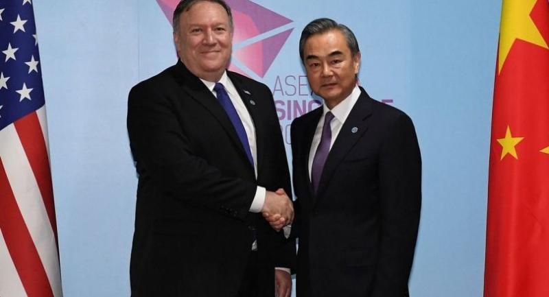 The two senior diplomats met on the sidelines of the annual ASEAN Foreign Ministers' Meeting and related meetings in Singapore amid widespread concern over bilateral trade friction.