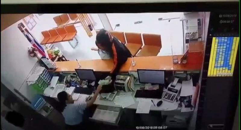Thalang police responded at 9.05am and learned that the robber arrived on a motorcycle, walked inside and drew a gun to force counter staff to fill his black bag with cash.