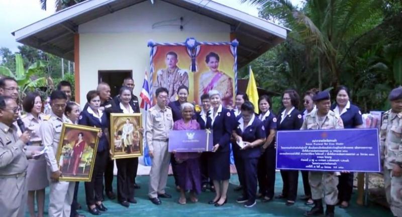 Jiraphan Penpas, chairwoman of the Sa Kaew Red Cross, presided over the ceremonies to give homes to Thon Jitharn in Muang district, Boonwat Ngamroop in Wattana Nakhon district and Phom Moranok in Klong Haad district.