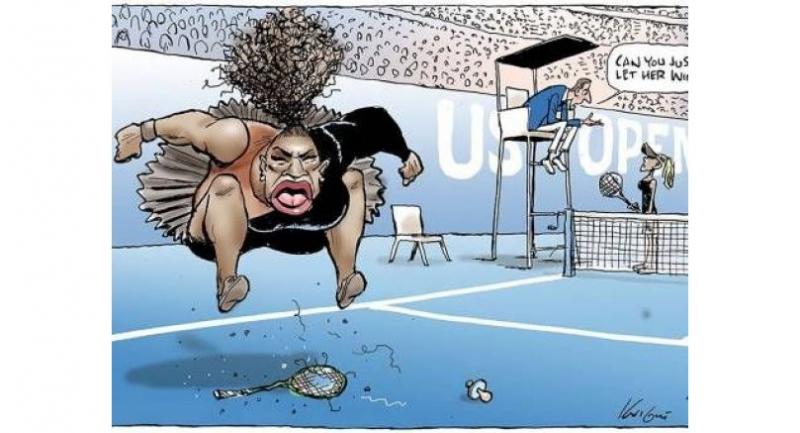 Mark Knight's caricature, published in Melbourne's Herald Sun newspaper on Monday, showed a butch and fat-lipped Williams throwing a temper tantrum at the US Open.