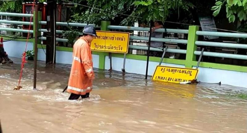 At 7am, several main roads in the heart of the Muang district were about 40cm deep in water.