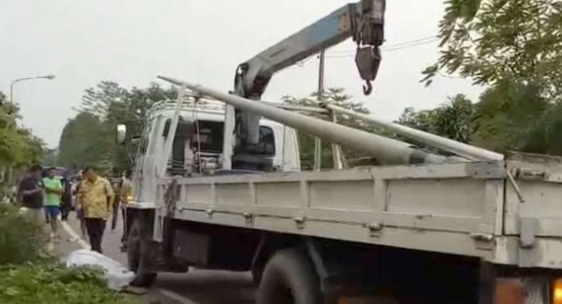 A witness, Laddawan Sutthirung, 51 said the workers were hired by a motorist to instal a new lamp pole after the motorist hit and damaged it last week.