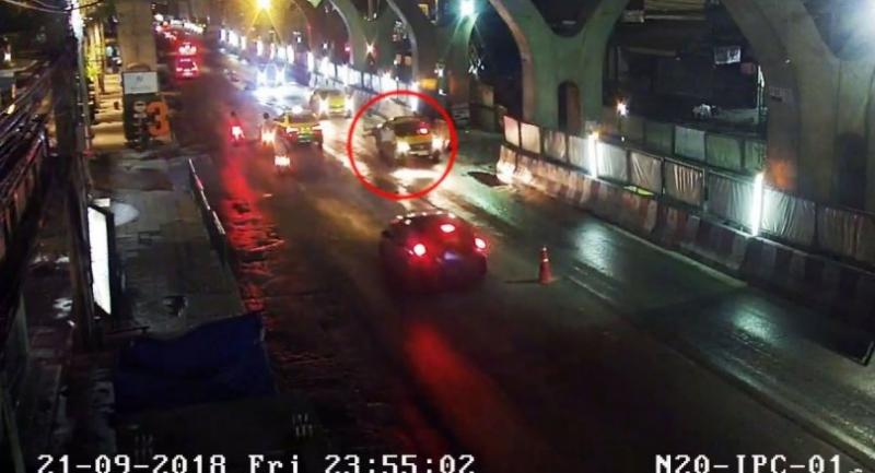 Video shows the taxi hitting Itthipol Wongsa as he was crossing the road in front of Gate 3 of the Ying Charoen Market in Saphan Mai at 11:50pm on September 21. He was rushed to Bhumibol Hospital but succumbed to his injuries. The clip was posted online by Airrin KO, seeking tips on the identity of the taxi driver.