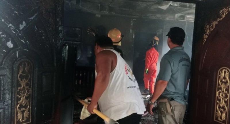 Rawai Mayor Aroon Solos said: “The foreign man living in the house with his Thai wife set the house on fire this morning. After that, he headed to the windmill viewpoint overlooking Yanui beach on his motorbike.