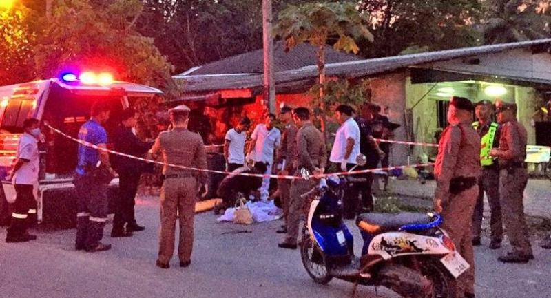 Orrathai Fonghoay, 55, from Trang, was found covered with blood on the ground. Five stab wounds were found on her body. She was taken to Thalang Hospital.