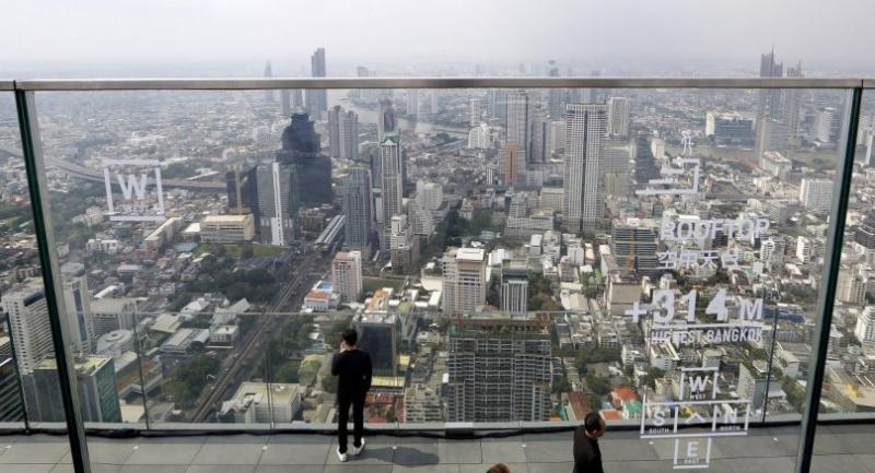 Visitors walk around the observation deck of the King Power Mahanakhon building skywalk in Bangkok on Friday.