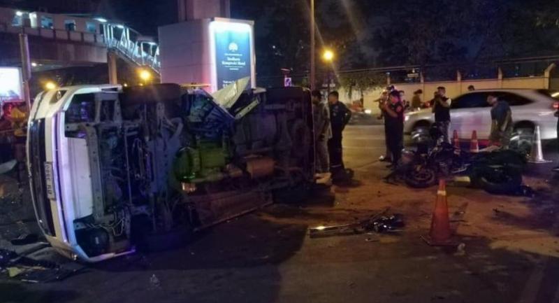 The Lumpini police station was alerted at 10.30pm of the accident in front of Soi Mahad Lek Luang 2 off Ratchadamri Road in Lumpini district near the BTS Ratchadamri station.