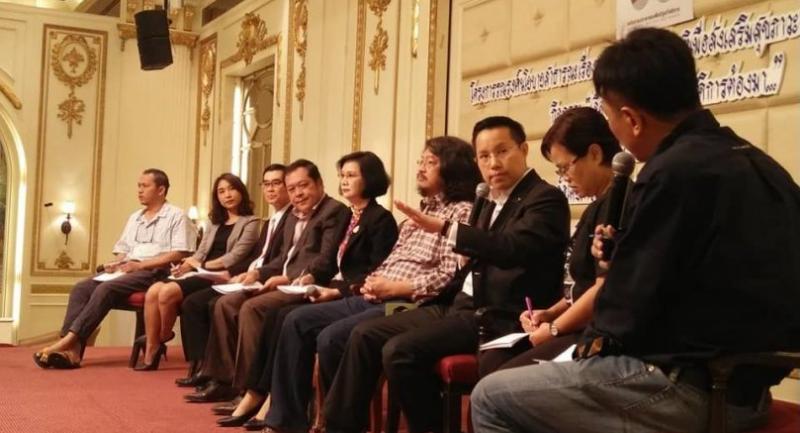 Representatives from several political parties listened to Jon at yesterday’s event. Nimit Tien-udom, who represents the People’s Network for Welfare State, then urged the representatives of various parties to express their viewpoints and plans related to a welfare state.