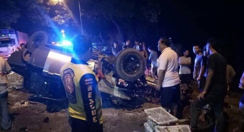 Sawaeng Paramee, 52, died at the scene. His wife Chalita Paramee, also 52, and the driver of the other pickup, 50-year-old Nokim Yojina, died on the way to hospital.