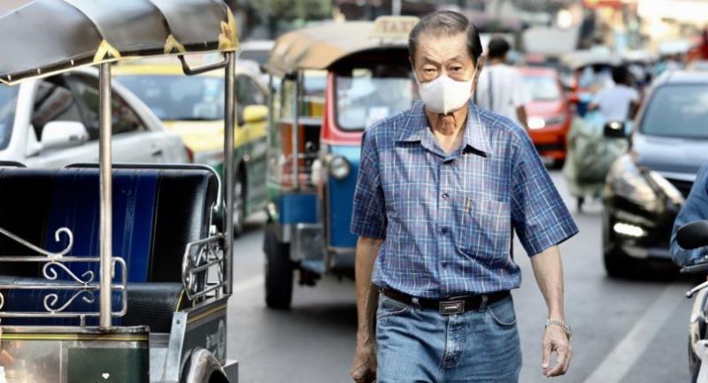A man tending to a street food stall wears a protective mask as bad air pollution continues to affect Bangkok. // EPA-EFE PHOTO